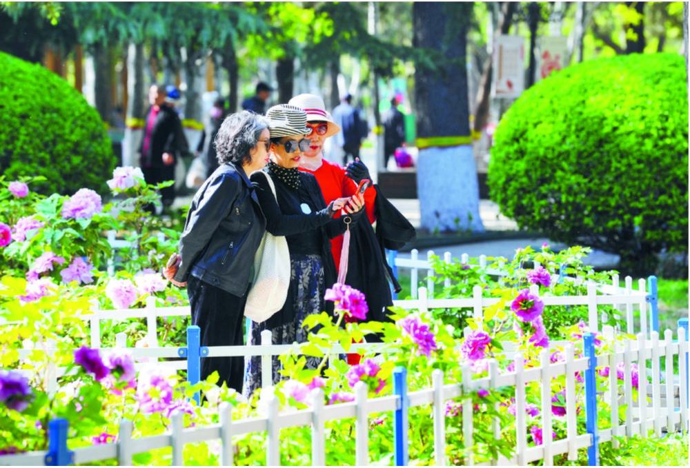 在長安公園牡丹園,紫色的“層中笑”雍容,粉色的“雪映桃花”嬌俏,紅色的“富貴滿堂”奪目,4月中旬是最佳觀賞期。2024年,長安公園對其補植、擴建,現種植面積達2631平方米。盛開的牡丹前,市民、攝影、繪畫愛好者忙著捕捉精彩瞬間。市民劉大爺笑著說:“我每年都盼著牡丹花開,看著這些牡丹,心里舒坦,生活也更有滋味兒。”年輕媽媽李女士帶著孩子在花叢邊拍照,她興奮地說:“帶孩子來感受這春天的美好,把這些漂亮的花兒拍下來,留作美好的回憶。”