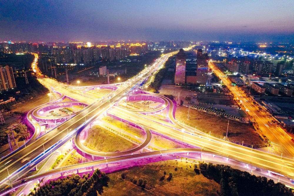 璀璨燈光將北三環(huán)體育大街立交橋裝扮得流光溢彩,如夢(mèng)如幻。 記者 王兆偉 攝