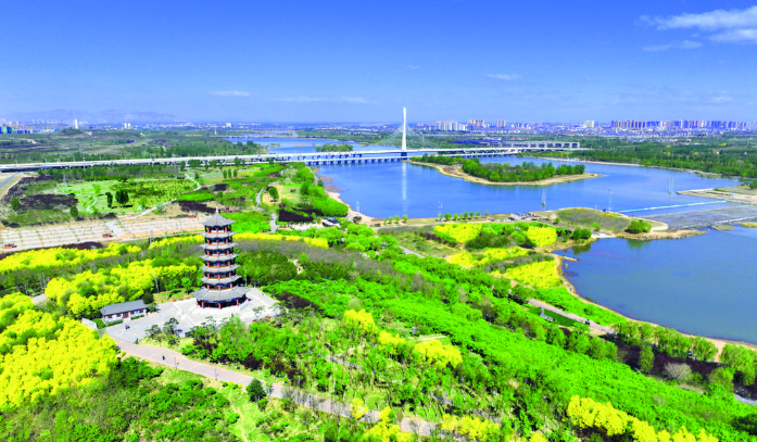 4月22日,石家莊滹沱河畔春光正好。河中碧波蕩漾,沿岸綠樹成蔭,復興大街滹沱河大橋與攬秀塔交相輝映,游人徜徉其間,流連忘返。