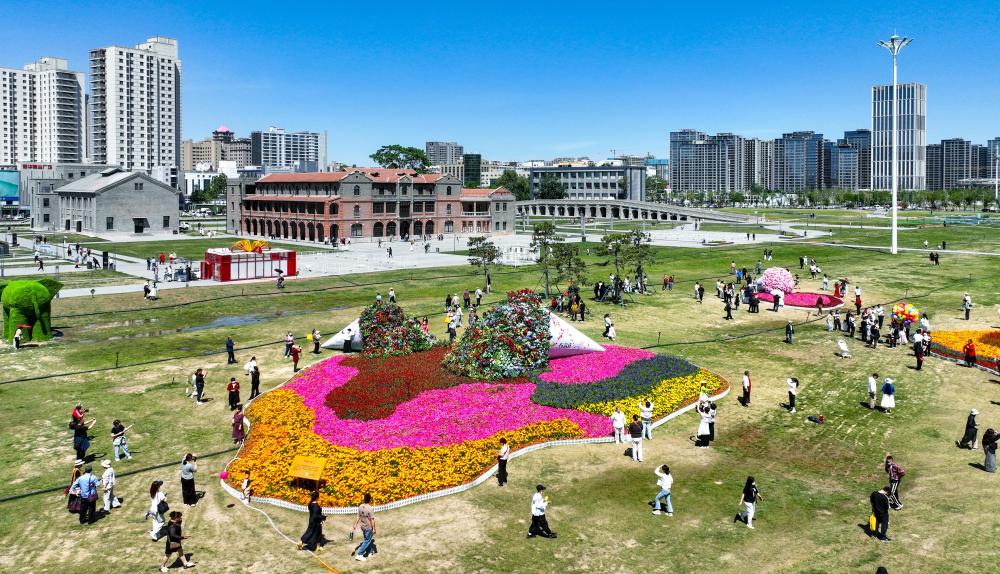 “快看,這‘孔雀’太漂亮了!”4月28日上午,在石家莊市文化廣場,一只“孔雀”昂首挺立,五彩斑斕的尾羽舒展如扇,在陽光下熠熠生輝。上百只白鴿在花壇四周盤旋飛翔,與靜態的孔雀造型相映成趣,引得過往市民紛紛駐足拍照。 “這座‘孔雀開屏’立體花...