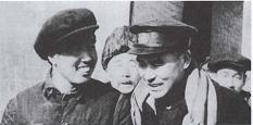 1.石門解放后的第一任市委書記毛鐸(前左)與工人親切交談