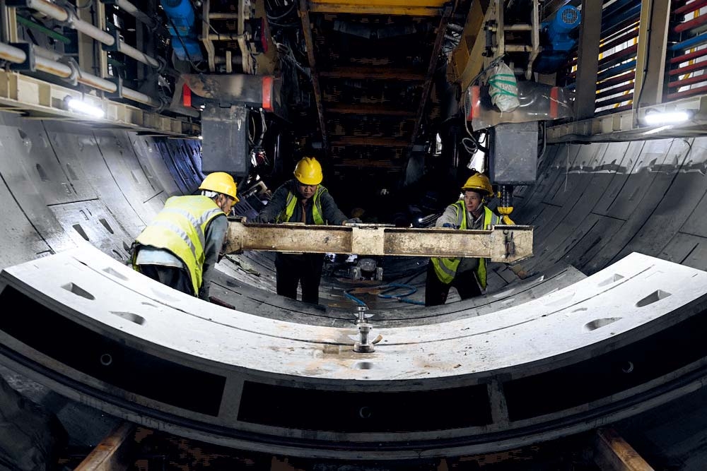 地鐵4號線省廣電站正在進(jìn)行盾構(gòu)施工。記者 郄 磊 攝