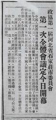 《石家莊日報》發表的政協首屆一次會議開幕消息