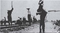 1.荷槍實彈的日本兵在監視中國人修筑石德鐵路