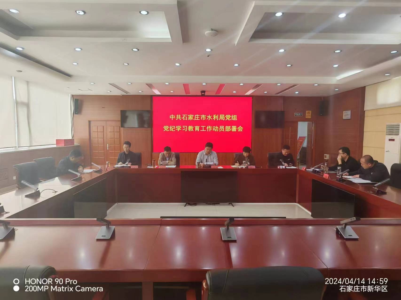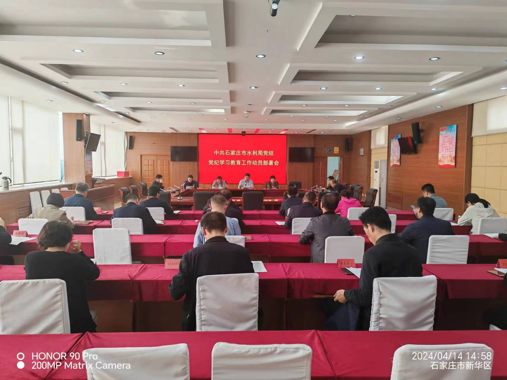 2024年4月14日,市水利局召開黨紀學習教育工作動員部署會議,局領導,局機關各科室、局屬各單位主要負責同志參加,黨組書記、局長王勇軍主持會議并講話。會議傳達了中央、省、市關于開展黨紀學習教育有關會議精神,安排部署了我局開展黨紀學習教育的有關工作。